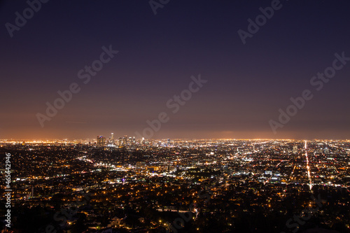 © Moritz Sirowatka, Fototapeta premium Downtown Los Angeles Skyline mit Hochhäusern bei Nacht