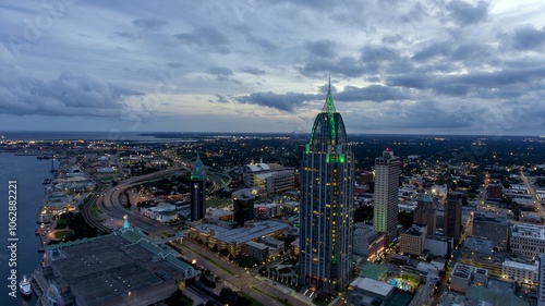 © Cavan, Fototapeta premium Downtown Mobile waterfront skyline at sunset