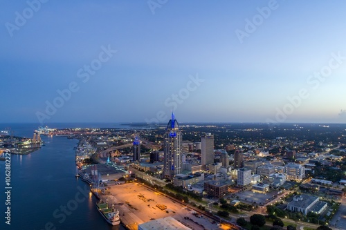 © Cavan, Fototapeta premium Downtown Mobile waterfront skyline at sunset