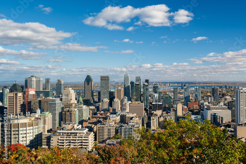 © Shawn.ccf, Obraz premium Downtown Montreal city skyline in autumn. Montreal, Quebec, Canada. View from the Kondiaronk lookout, Mount Royal.