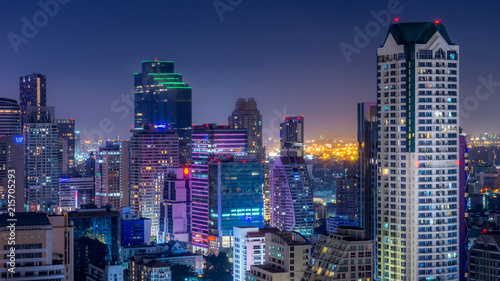 Fototapeta premium Downtown Silom financial district at night from the 38th floor of the State Tower, Bangkok
