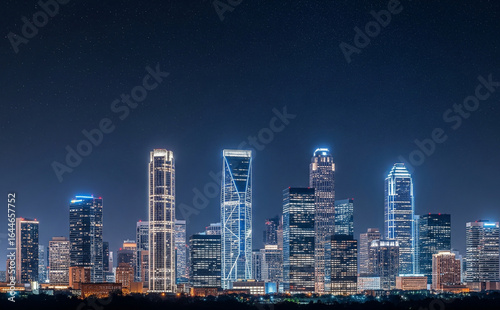 Obraz premium Downtown Skyline At Night With Stars In The Sky And Architectural Lighting