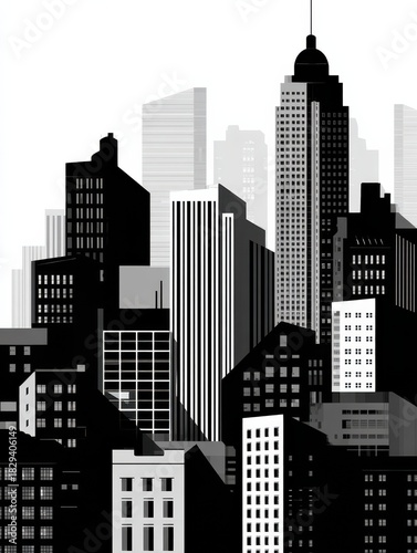 © Johannes, Fototapeta premium downtown slogan with black and white city buildings vector illustration no logos no brands ar 34