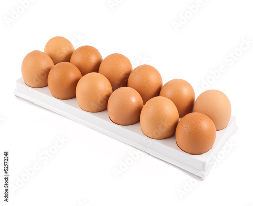 © exopixel, Fototapeta premium Dozen of eggs in a case isolated