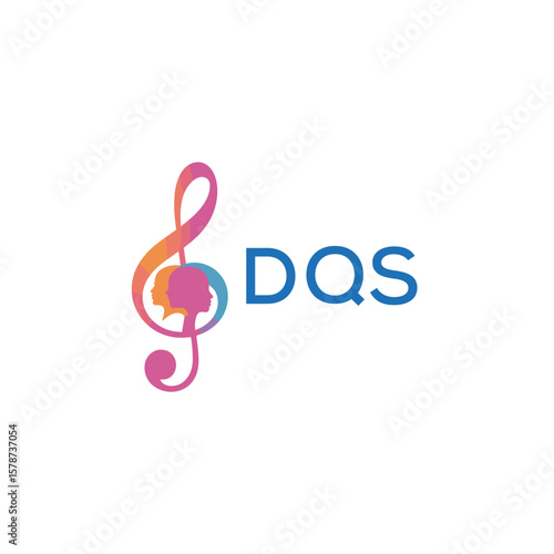 Fototapeta premium DQS “Creative music logo with human silhouettes and treble clef in gradient colors, DQS Later Logo, modern artistic design isolated on white background”