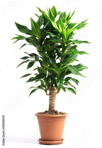 © Samady, Obraz premium Dracaena trifasciata plant on a pot, isolated on white background