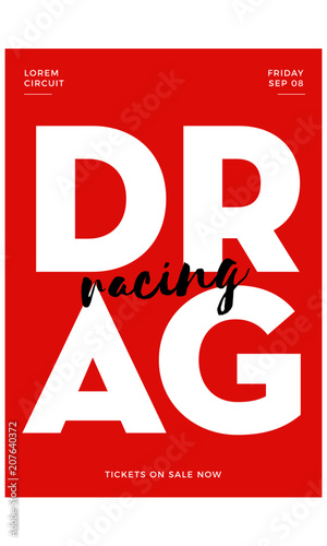Fototapeta premium Drag Race Poster Template with Date, Time and Ticket Template. Modern Typography Design