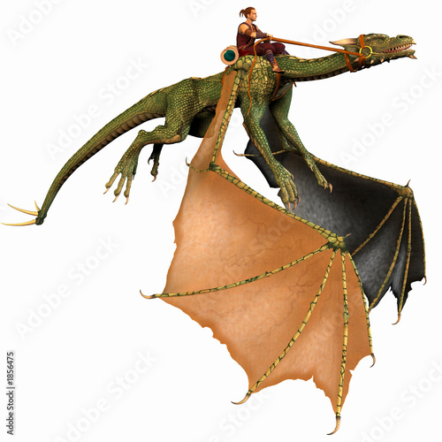 © Jackie Lewin, Fototapeta premium dragon and rider flying