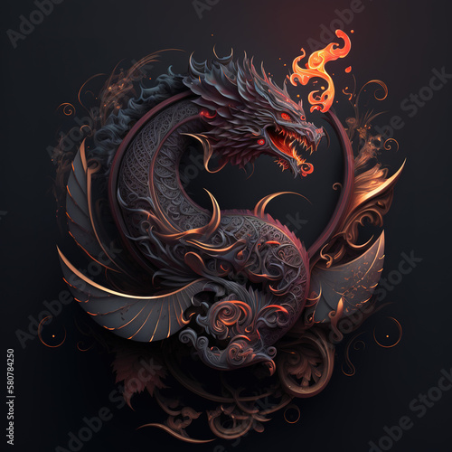 Fototapeta premium dragon, asian dragon, chinese ornament, chinese zodiac, head only, portrait, detailed ornaments, fire style
