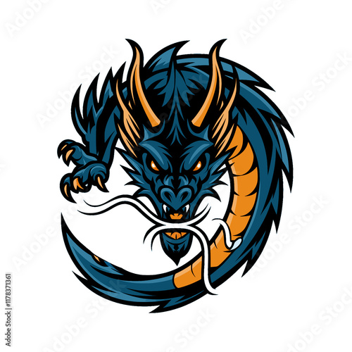 © Zyram Graphic, Fototapeta premium dragon attacking pose with claws design circle logo
