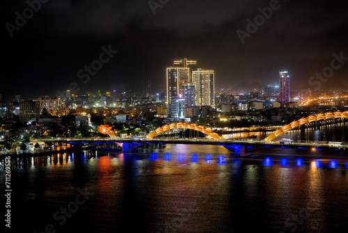 © hiro, Obraz premium ドラゴンブリッジ(ロン橋)と街の夜景 ベトナム ダナン Dragon bridge Vietnam Danang