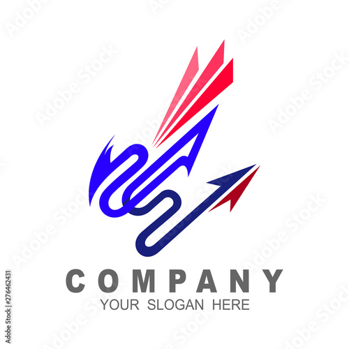 © nur, Obraz premium Dragon business company logo template emblem + dragon and line design vector
