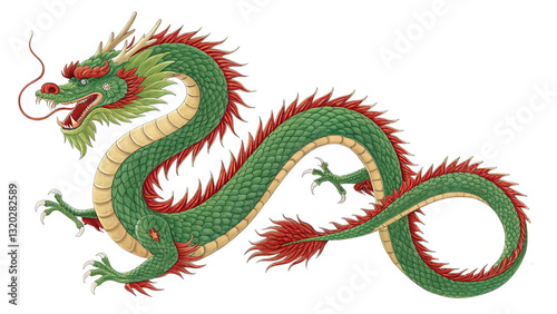 © Thachakrit, Obraz premium dragon coiled majestically, sharp scales gleaming, fierce eyes. isolated on a white background