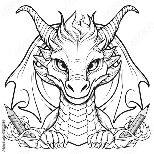 Obraz premium Dragon Coloring Page, Ai Generative