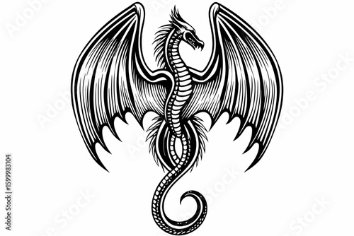 Fototapeta premium Dragon Engraving with Spread Wings