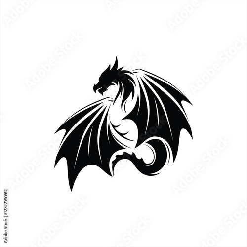 © avante_speed, Obraz premium Dragon flapping wings upright illustration logo design