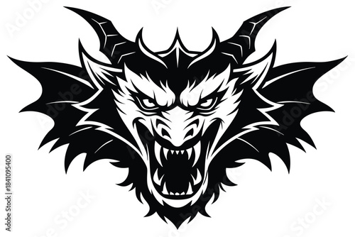 Obraz premium dragon head silhouette line art vector illustration with a white background
