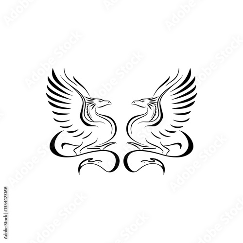 © vitto juice, Obraz premium dragon line logo vector design