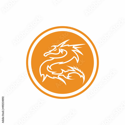 © Achmad99, Obraz premium Dragon logo circle background vector icon illustration design template