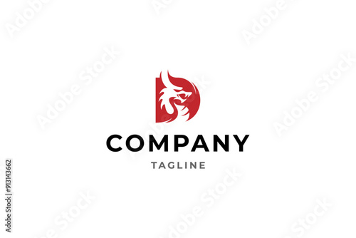 © Dina, Obraz premium dragon logo with letter D in flat vector design
