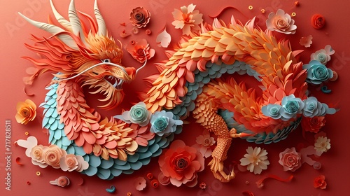 © Mansi, Naklejka premium Dragon of Love: A Paper Artwork Celebrating Lunar New Year Generative AI