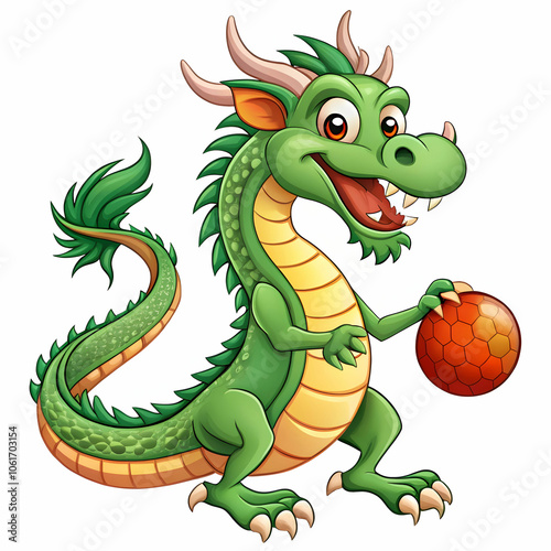© Daani, Fototapeta premium dragon playing with balll in white background