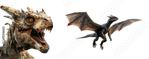 Fototapeta premium Dragon set in close up, full body and flying, Isolated on Transparent...