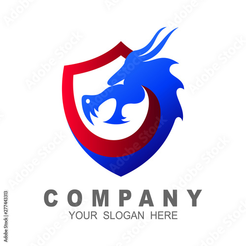 © nur, Obraz premium Dragon shield logo template, shield icon