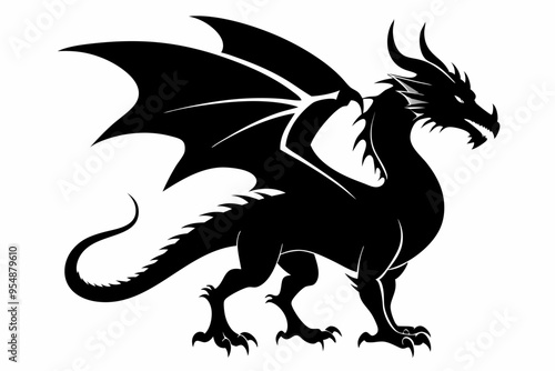 © Trendy CraftSVG , Fototapeta premium Dragon silhouette vector illustration, Black Dragon silhouette vector design