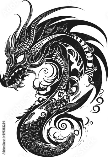 Obraz premium Dragon tatto design. Vector illustration. dragon tribal
