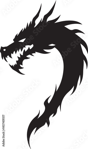 © dhimage, Naklejka premium Dragon tattoo design, vector illustration, Dragon logo, black and white illustration of a stylized dragon, transparency background.