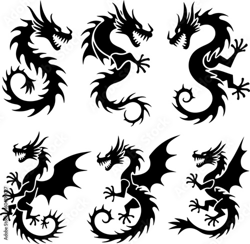 Obraz premium dragon tattoo, tribal dragon, vector bundle