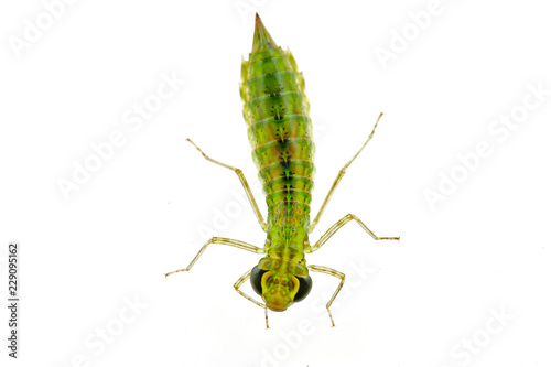 © qiujusong, Naklejka premium Dragonfly larvae isolated in the white
