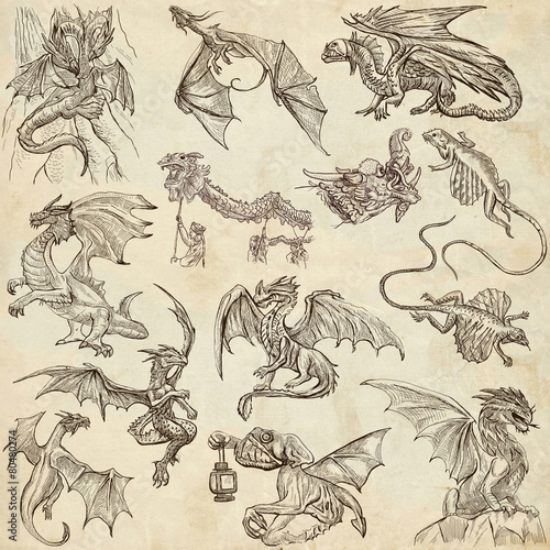 © kuco, Obraz premium Dragons. An hand drawn freehand sketches. Originals.