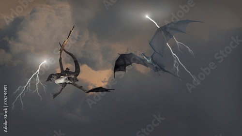 © Algol, Fototapeta premium Dragons Fighting in Storm Clouds