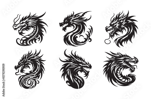 © raisul, Obraz premium Dragons head vector clip art silhouette