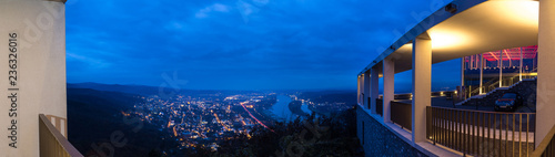© Tobias Arhelger, Obraz premium dragons rock koenigswinter germany in the evening panoramic view
