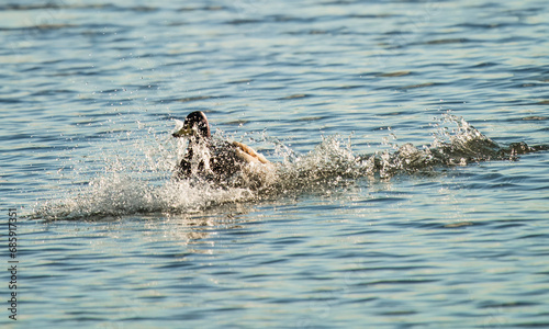 © Dave, Fototapeta premium drake mallard landing on lake