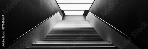 © budi, Obraz premium Dramatic ascent captured, Striking black and white staircase composition
