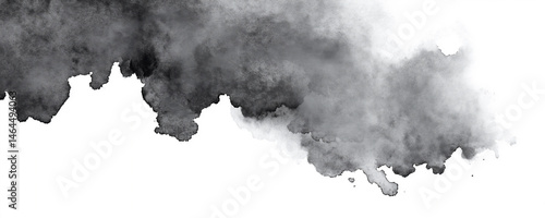 © MCGORIE, Obraz premium Dramatic black and grey ink blot or abstract smoke cloud design element isolated on a white backdrop. Features organic diffusion and textured edges, suitable for grunge effects or moody compositions.