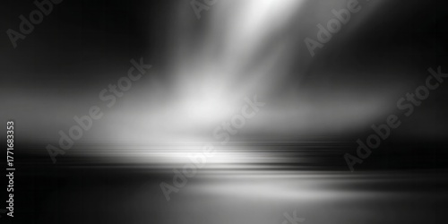 Fototapeta premium Dramatic black and white spotlight illuminates a reflective, horizontal surface