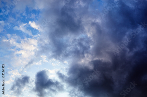 Obraz premium Dramatic black cloud before rainy. Beautiful cloudscape over horizon, sky