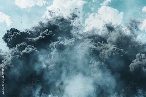 Obraz premium Dramatic Black Smoke and Clouds Against a Blue Sky