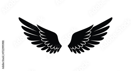 © MIRAJ02, Obraz premium Dramatic black wings spread gracefully a striking visual silhouette