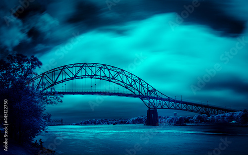 © Naya Na, Obraz premium Dramatic Blue Night Cloudscape over Bourne Bridge on Cape Cod in Massachusetts