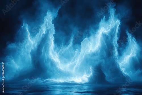 Fototapeta premium Dramatic blue smoke forms a powerful display against a dark background