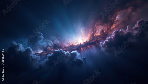 Fototapeta premium Dramatic celestial clouds illuminated by cosmic light