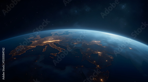 Obraz premium Dramatic Cinematic Night Earth View Europe City Lights Horizon