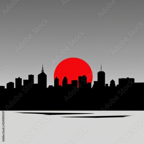 © Pixel Sage, Naklejka premium Dramatic city skyline silhouette at night with dark clouds and flying birds creating a mysterious and ominous atmosphere silhouetted skyline cityscape architecture illustration building city vector