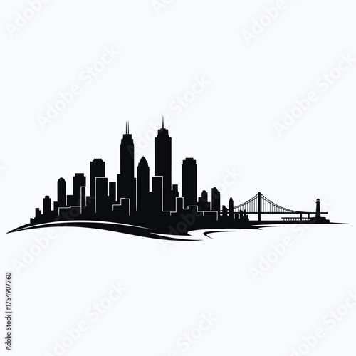 Naklejka premium Dramatic cityscape featuring a bridge and skyline a striking silhouette